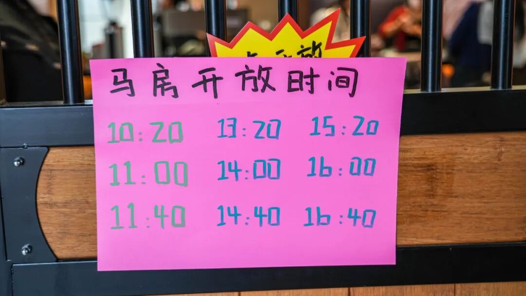 想和马来个真正的“面对面”,光在咖啡馆门口看可不够。马房每天定时开放,每次约15分钟,掐准时间就能进去和马儿近距离互动。