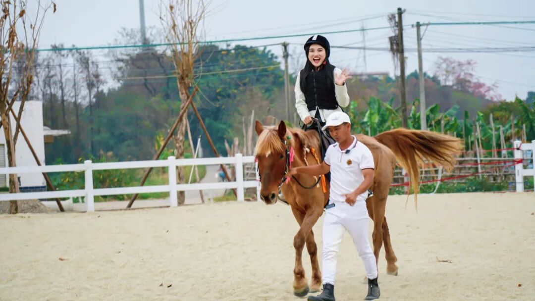 第一次骑马也不用慌。马场配齐了全套防护装备,专业导师全程牵着马、陪在身边,教你姿势、帮你控马,安全感拉满。