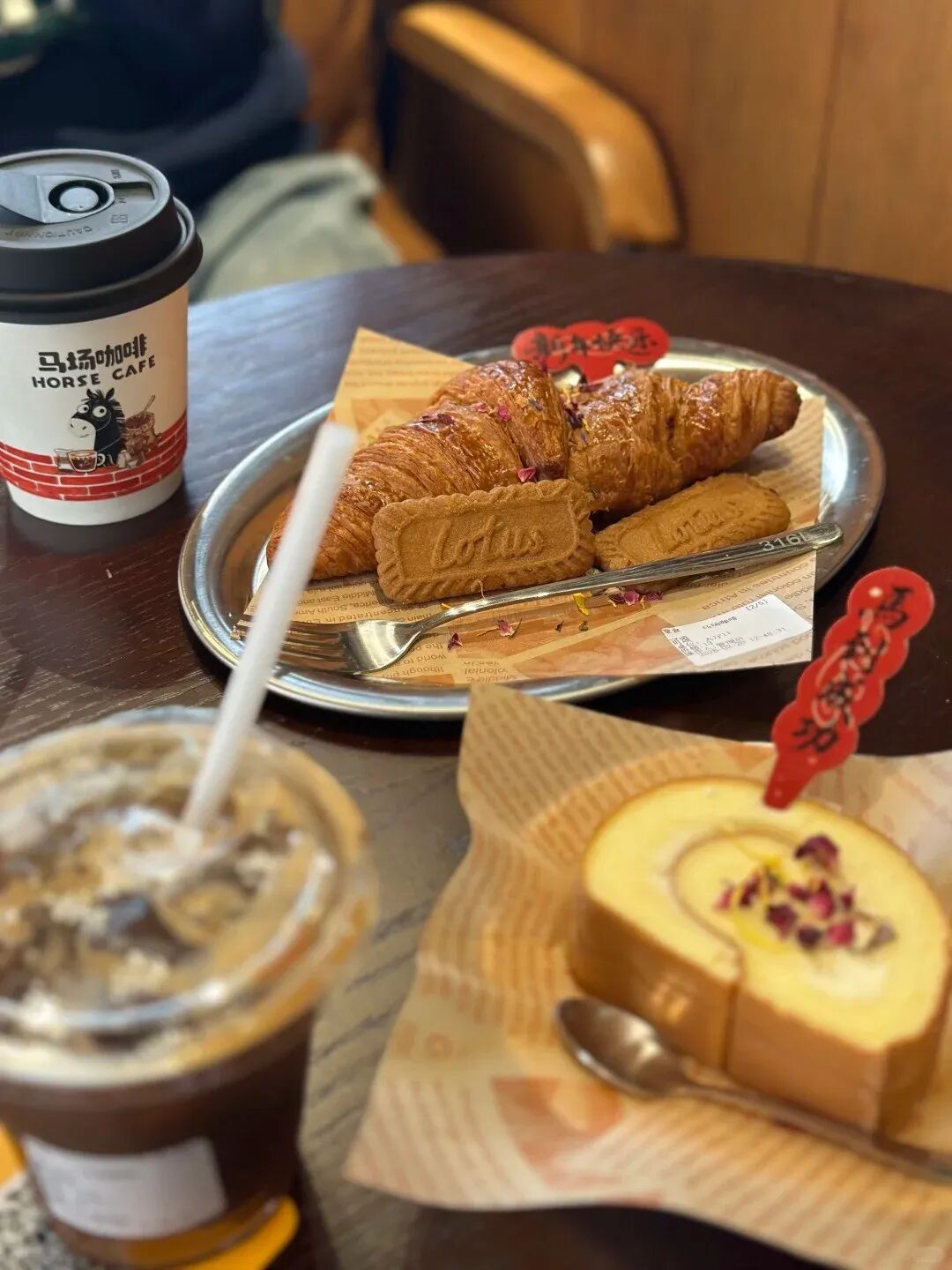 咖啡馆内供应咖啡特调、牛角包、蛋糕等。甜点颜值超高,拍照打卡必点!