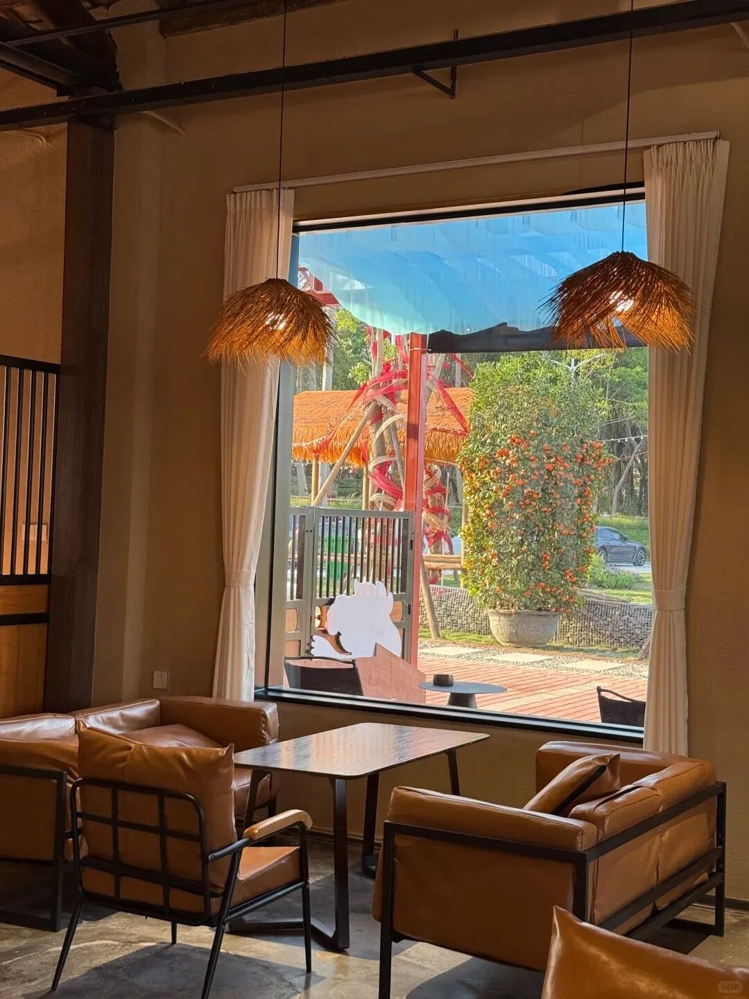 咖啡馆里有室内座位,不想吹风的可以窝在里边听歌喝咖啡,一坐就是半天,看着窗外的草地和大烟囱发呆,真的超级治愈~