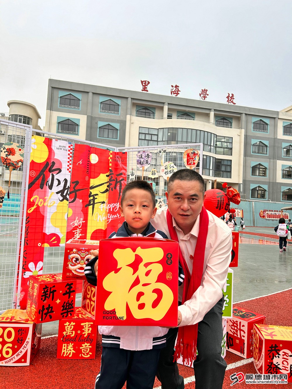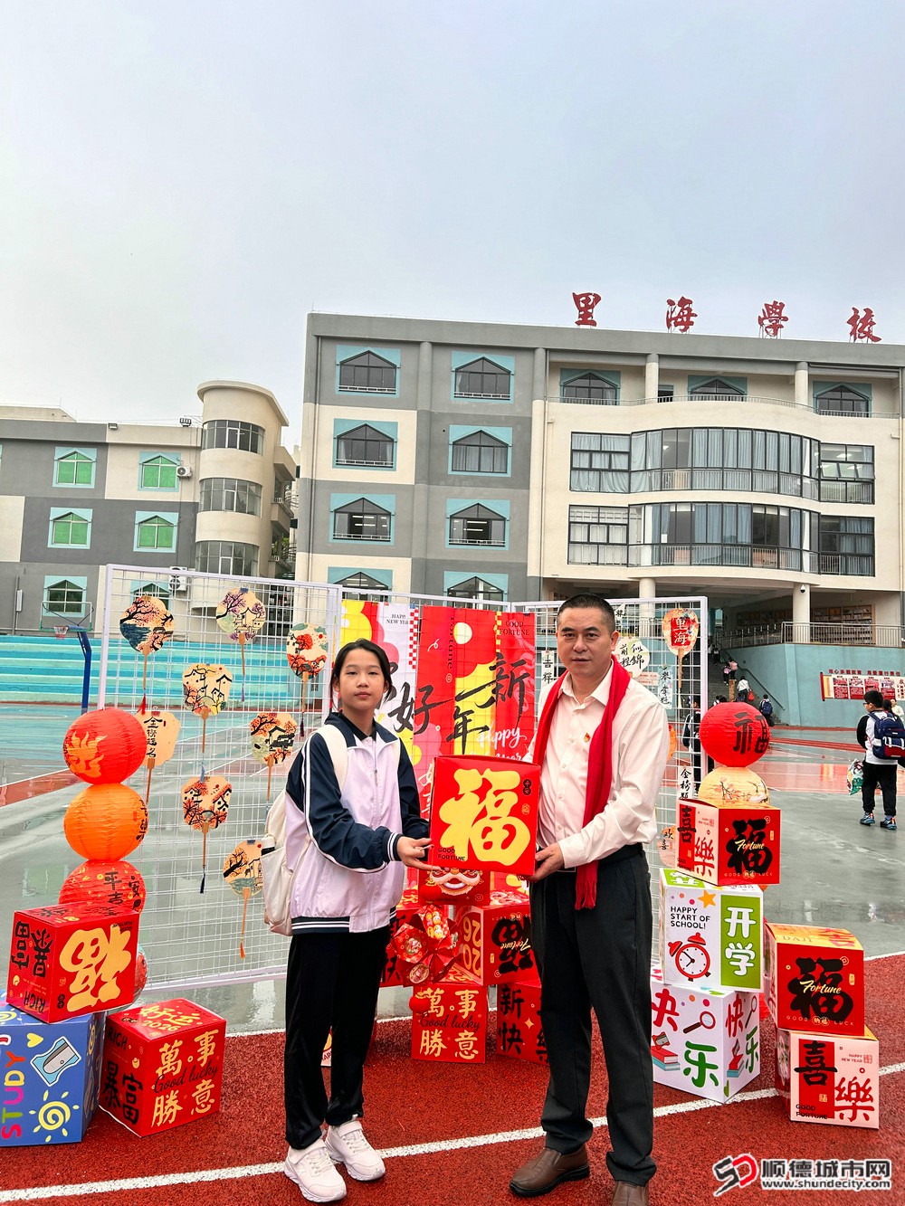 3月2日,顺德龙江里海学校迎来新学期开学第一天。清晨,学校党支部书记、校长唐景斌带领全体行政守候在校门口,为入校学生送上精心准备的“福”字与暖心祝福:“祝你新的一年马上有福,学习进步,平安喜乐!”