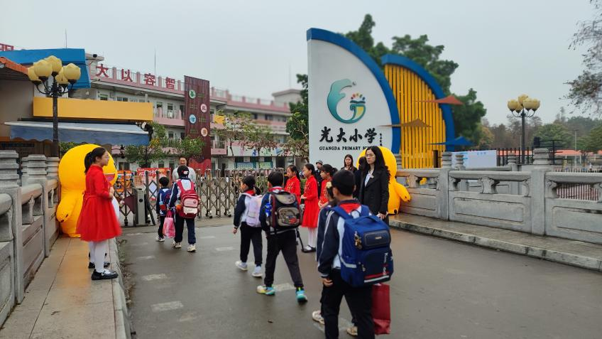 同样在上学期末,勒流扶闾小学举行焕新工程竣工仪式。自2022年10月起,扶闾小学启动焕新工程, 分阶段实施校门改造、教学楼和综合楼翻新、风雨长廊建设及书香空间打造等工程。如今扶闾小学校园面貌实现整体跃升,为全体师生精心打造了一个更加优越、现代化、安全舒适、充满人文气息的学习与工作环境。
