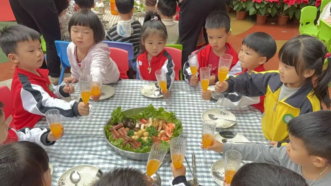 江义幼儿园的小朋友身着喜庆服装,用灵动的舞姿、灿烂的笑容开启开学第一天。最让人惊喜的是,幼儿园特别准备了粤式盆菜,小朋友们围坐在一起,共享美食带来的快乐!