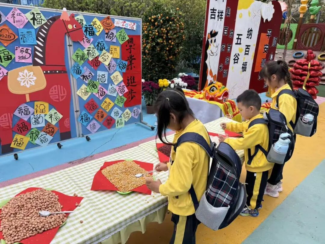 从入校门开始,每一步都是满满惊喜!财神发放马年福卡;敲锣打鼓,为新学期加油打气;领“吉礼”,寓意节节高升、大吉大利、“卜”学多才、聪明伶俐、平平安安;跨福门,寓意马到成功。