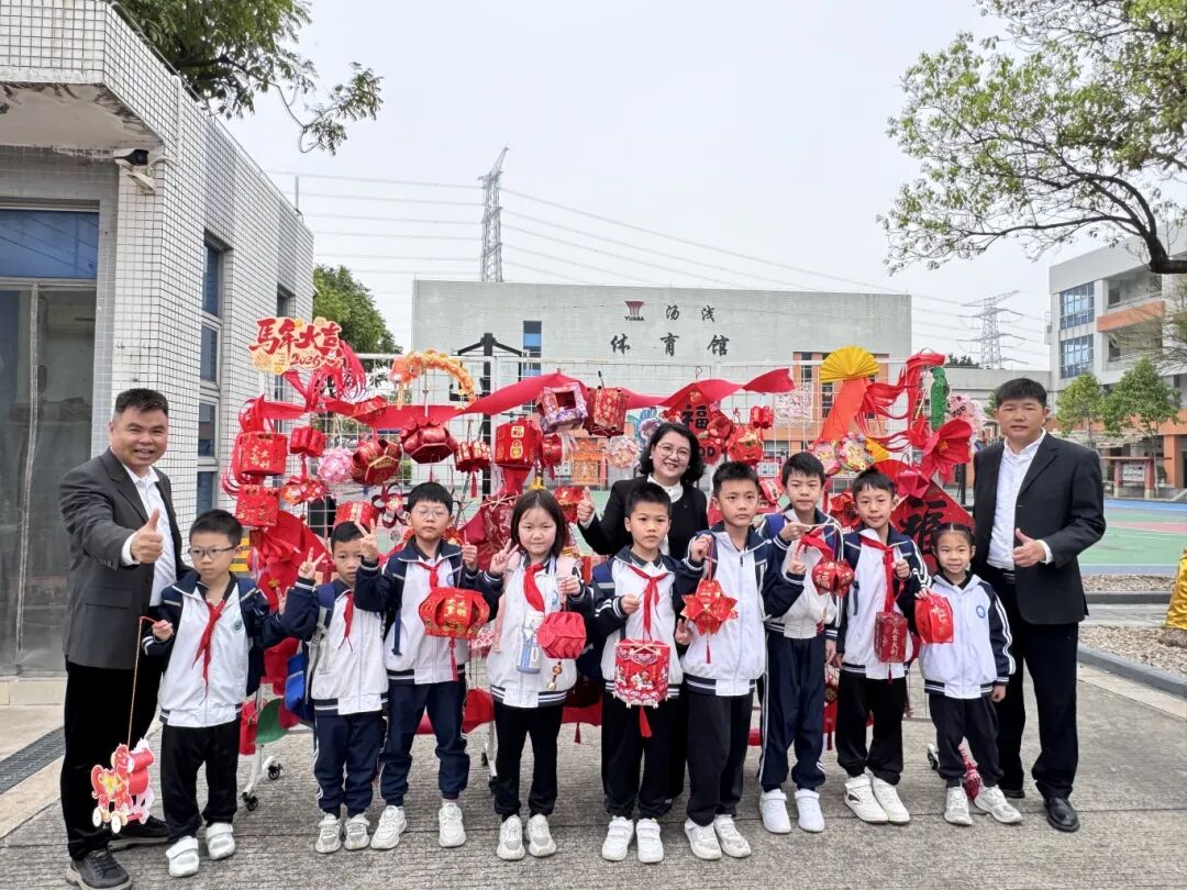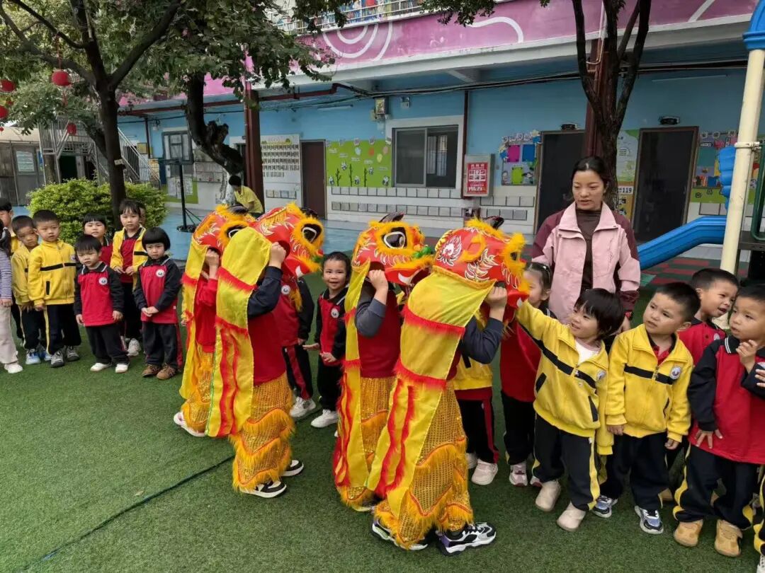 小朋友、老师齐摸狮头寓意鸿运当头,摸狮尾寓意顺风顺水,摸狮子眼睛寓意前途似锦。小醒狮们还穿梭于各教室,巡游采青,点燃校园欢乐气氛。临近元宵佳节,学校展示了手工花灯作品,增添浓浓的节日氛围。