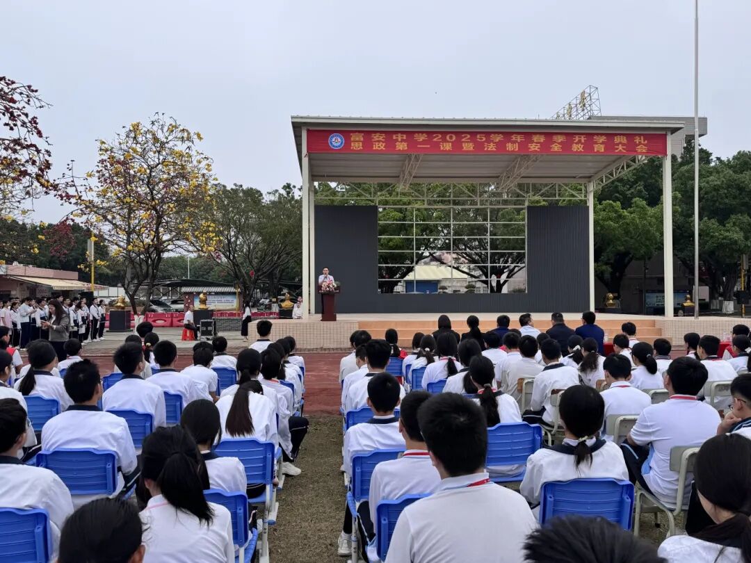在开学典礼上,学校交通安全校长向师生普及交通安全知识,强调交通安全不容忽视;卫生健康校长围绕爱眼护眼和春季传染病防控两大内容进行科普,并针对蚊媒传染病,讲解了清理积水、安装纱窗、做好个人防护等防控知识;校长何鑑宝带来思政第一课,生动阐释2026年国家“十五五”规划开局之年的意义,细数“十四五”期间祖国在科技、文化领域的亮眼成就,鼓励同学们将个人梦想与祖国发展紧密相连。