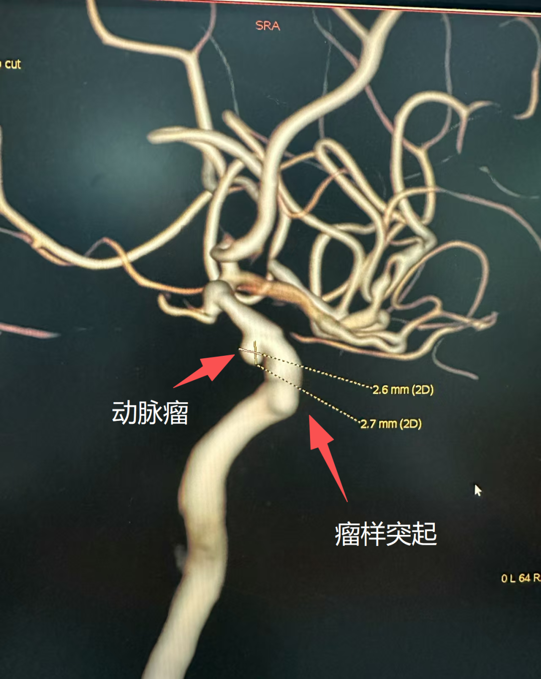 ●大型巨型动脉瘤可能出现:反复固定部位头痛、单侧眼睑下垂(压迫动眼神经)