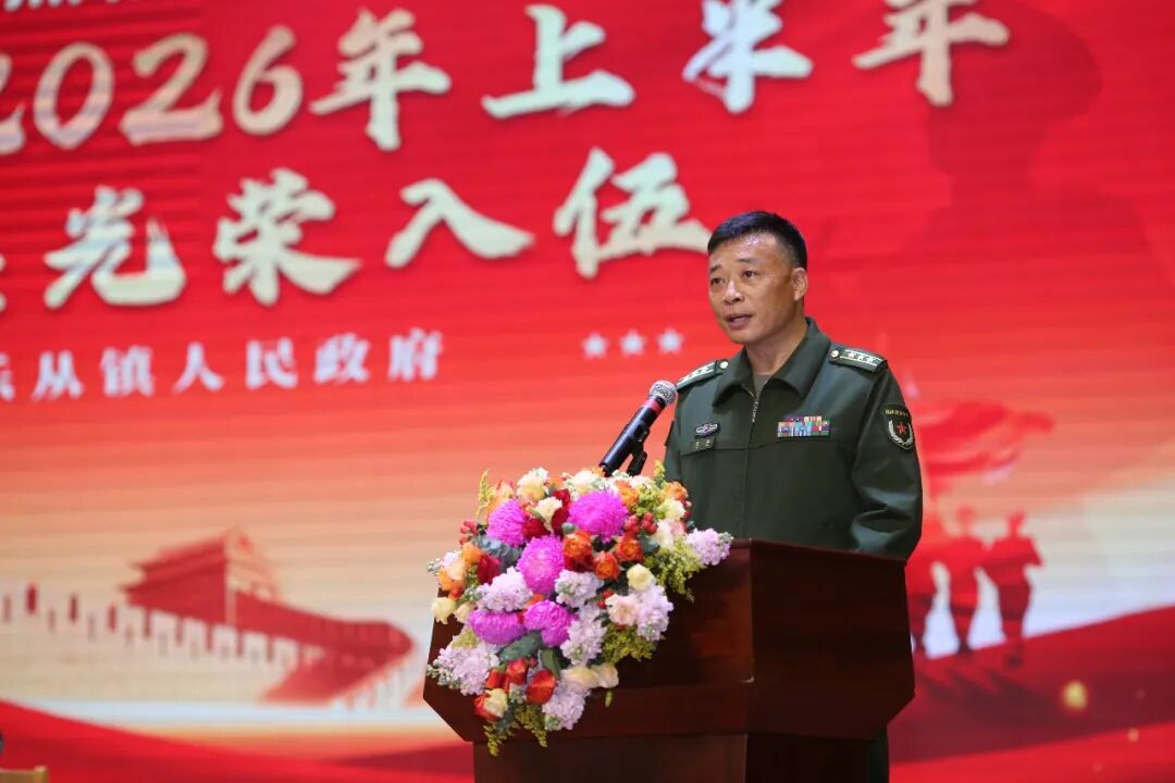 大会在雄壮的国歌声中拉开帷幕。会上,乐从镇党委副书记、镇长陈子荣宣读了2026年上半年新兵入伍命令,镇武装部长黄林发委员发表致辞,他寄语全体新兵要珍惜荣誉,牢记家乡人民重托,到部队后要严格要求自己,刻苦训练,尽快实现从普通青年到合格军人的转变,为国防事业贡献青春力量。