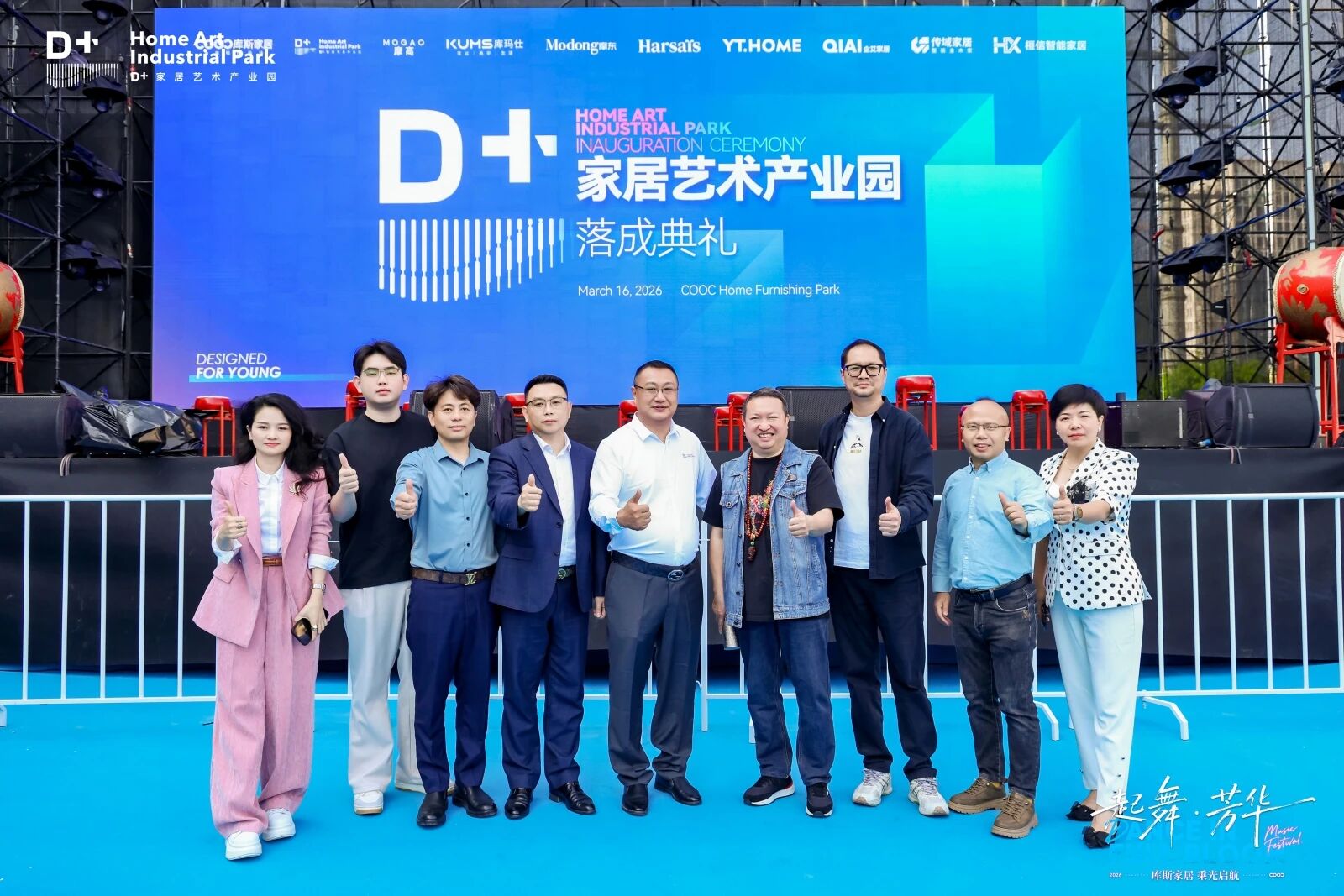 当日,库斯家居科技产业园前庭广场彩旗飘扬、锣鼓喧天,热烈的氛围包裹着整个园区,一场隆重的开园仪式在此如期举行。行业领导、地方政府代表、合作伙伴及媒体朋友齐聚一堂,共赴这场盛会,一同见证库斯家居发展史上的关键瞬间。