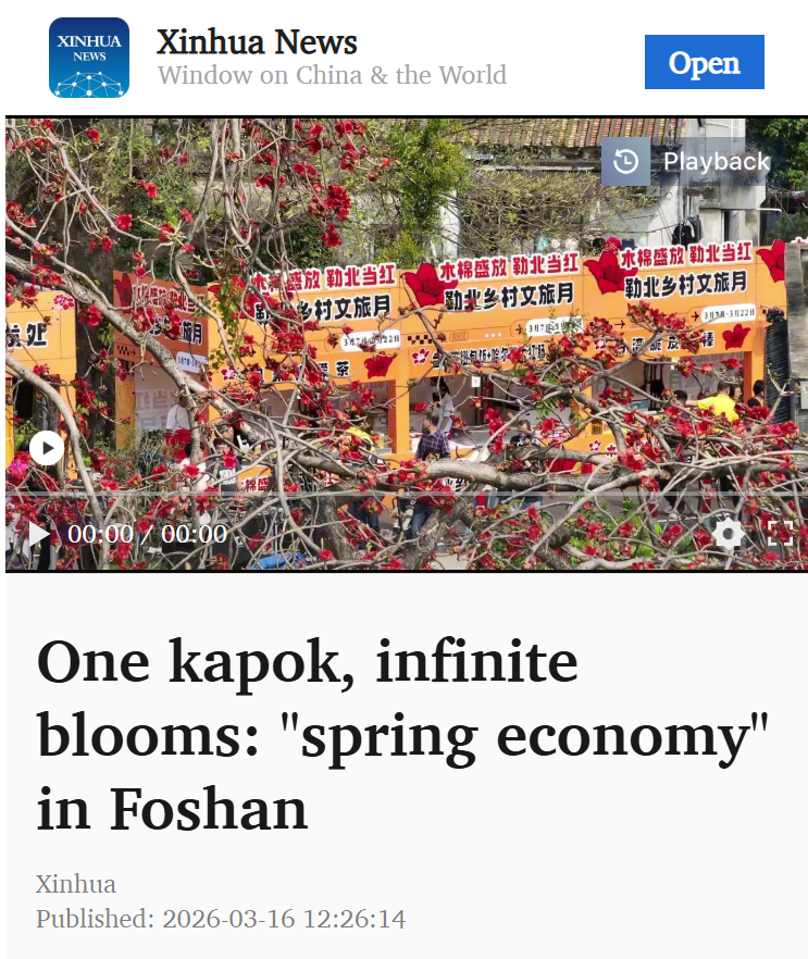 近日,新华社客户端海外版Xinhua News以长达20多分钟的视频,向全球介绍顺德香云纱、勒北木棉花。视频中,国际友人身着香云纱漫步在勒北百年木棉下,品尝用木棉花制作的特色美食,展现岭南水乡春日景象。