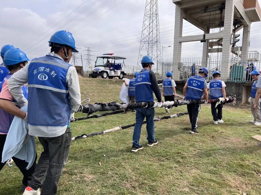 培训结束后,实战演练全面启动,模拟汛期突发情况,分场景开展实操处置。演练现场,工作人员有序开展堤围巡查、反滤围井实操,处置模拟管涌险情。