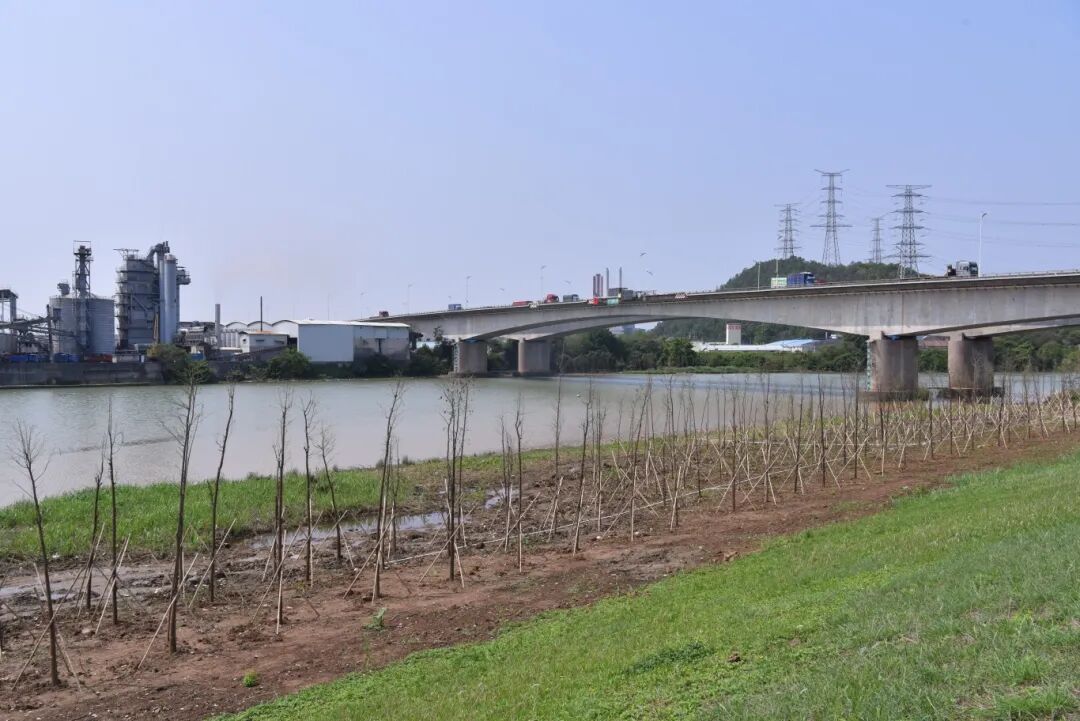 自绿美龙江建设启动以来,全镇以生态提质为核心,持续夯实生态基底,累计种植各类树木超2.5万棵,新增绿化面积近39.8万平方米,为环两江精品路线沿岸绿化提升筑牢基础。2026年一季度,龙江镇锚定绿美生态建设目标,持续推进环两江精品路线沿岸绿化提升工作,重点在甘竹溪沿岸发力,累计种植落羽杉超3000棵;截至目前,甘竹溪西岸已累计种植落羽杉超5200棵。同期,各村居积极响应绿美建设与环两江生态提升号召,在辖区内多点开展植树增绿行动,从左滩村甘竹溪大桥底,到西庆村良龙路、南坑村狮额口,再到万安村、麦朗村等沿岸点位,落羽杉、金丝楠、铁冬青、紫花风铃木等各类苗木错落栽植,进一步延伸生态绿廊的覆盖范围。