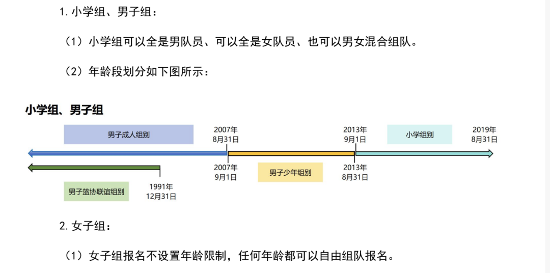 2.各组别每队可报领队1名,运动员3—4名(三人篮球比赛不设教练员)。