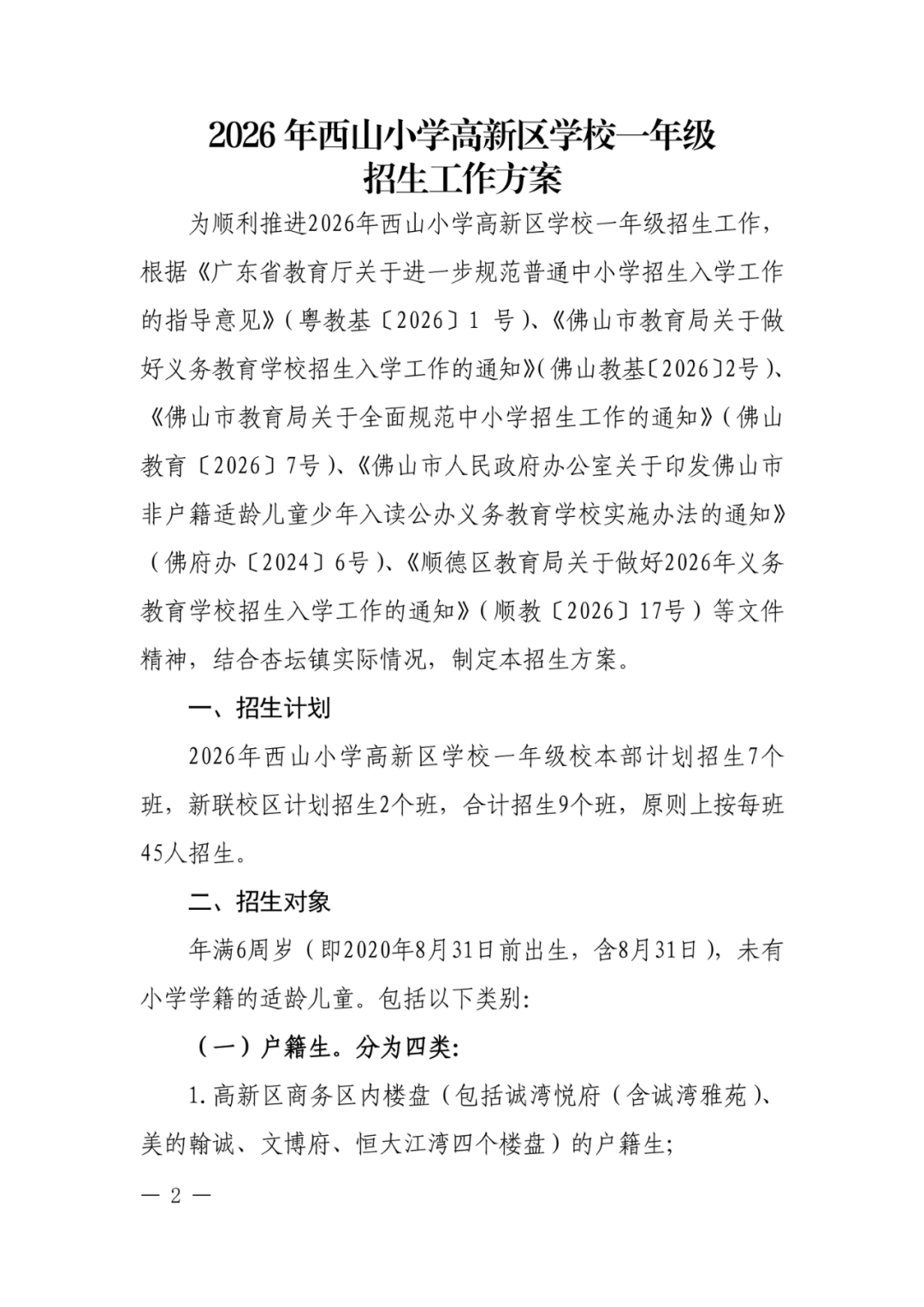 2026年西山小学高新区学校一年级招生工作方案