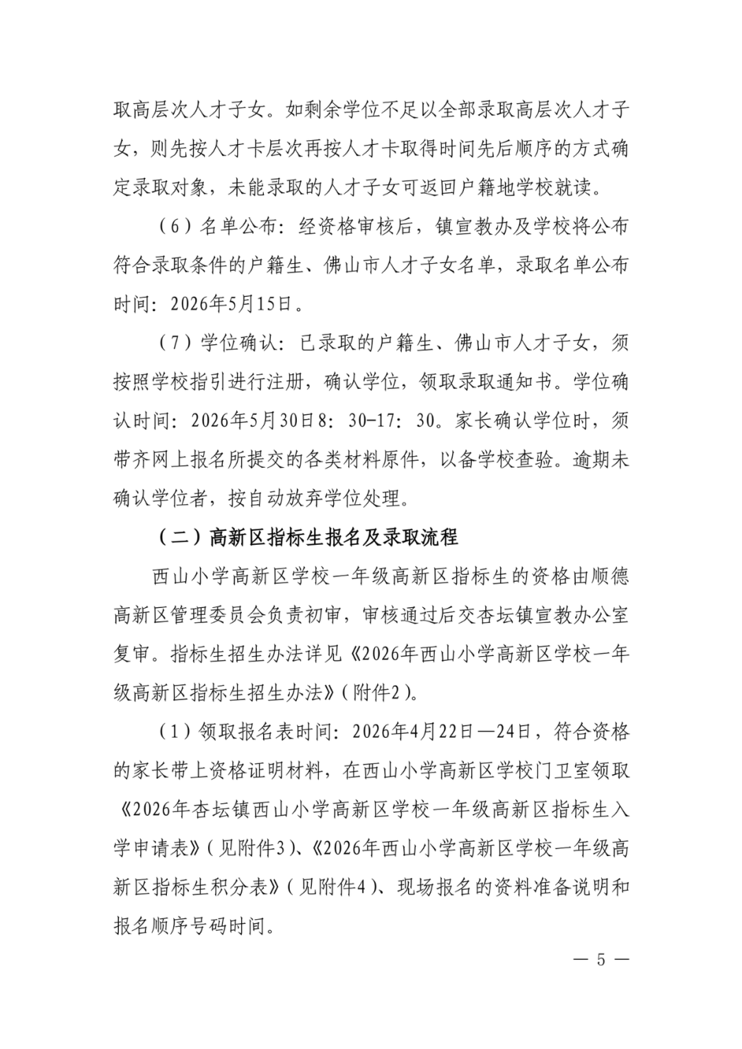 附件2:2026年西山小学高新区学校一年级高新区指标生招生办法