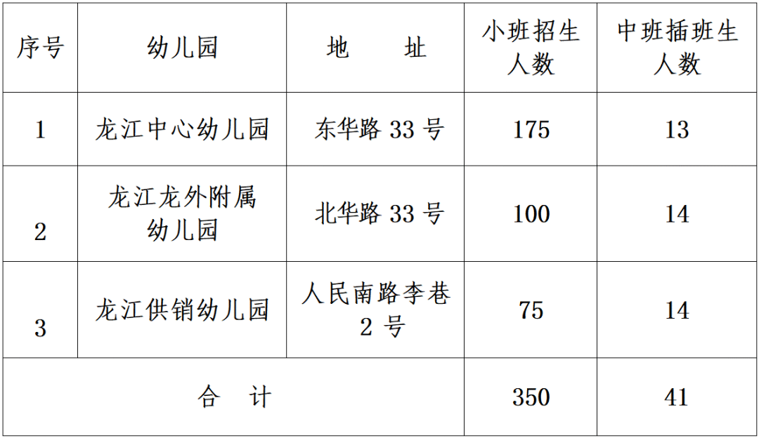 中班插班生只接受在龙江镇非公办性质幼儿园就读有龙江镇户籍的适龄幼儿报名。