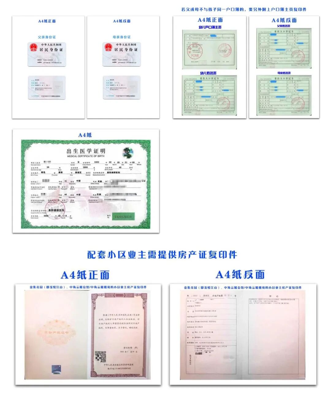 (2)父母资料:双方户口簿和身份证的原件及复印件